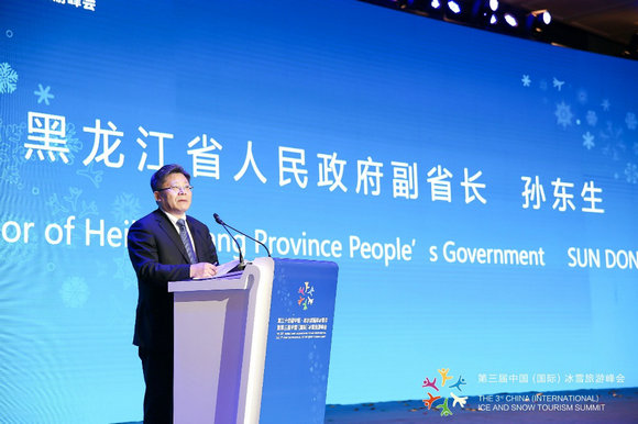 黑龙江省副省长孙东生发表致辞 中国冰雪旅游推广联盟理事长、黑龙江省旅游发展委员会主任锡东光在致辞中表示:“联盟七个冰雪省份要加快冰雪供给侧结构性改革,促进旅游产品供给质量提升,深入推进冰雪旅游、冰雪文化、冰雪体育、冰雪教育、冰雪装备制造等产业融合发展。让北国冰雪品牌享誉海内外。”