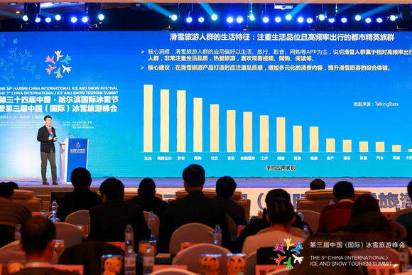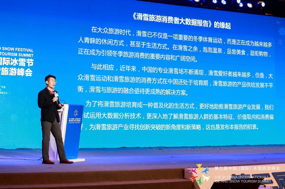 黑龙江省旅游委与中国铁路哈尔滨局集团有限公司签署了“百趟专列进龙江”战略合作协议 北京、吉林、辽宁、内蒙古、河北等中国冰雪旅游推广联盟成员单位代表也在峰会上展示了中国冰雪的多样性和创新活力,河北的崇礼滑雪小镇、环长白山温泉群、内蒙古的童话秘境等,都引起了国内外旅行商和媒体的关注。 在冰雪旅游论坛环节,来自中青旅、IDG资本、美团旅行、哈尔滨冰雪大世界、雪族科技的负责人分别围绕“中国冰雪旅游的产品升级”、“冰雪旅游投资”、“移动互联网技术赋能冰雪旅游产品创新与营销”、“中国冰雪旅游景区IP创新”、“粉丝经济下的滑雪旅游新趋势”等议题深度探讨中国冰雪旅游的创新路径。 值得一提的是,此次峰会提出了“冰雪+”的融合发展模式,推出3D全息投影冰雪秀和音乐剧、2017中国滑雪旅游消费者大数据报告,黑龙江省旅游委与中国铁路哈尔滨局集团有限公司签署了“百趟专列进龙江”战略合作协议,通过“冰雪+娱乐”、“冰雪+大数据”、“冰雪+铁路”、“冰雪+研学”等产业融合,创新冰雪旅游业态,拓展冰雪旅游新领域,推进冰雪旅游从单一旅游观光模式走向多产业融合发展。就在峰会召开的1月6日当天,黑龙江第一档冰雪真人秀节目《冰雪的游戏》经过一个月多筹备,当晚17点15将在广东卫视隆重首播。这是黑龙江省旅游委首次采用“旅游+娱乐”全新的营销模式,是一种探索,也是一种创新。通过精准的客源地投放,精确的人群范围影响,全力炒热今冬黑龙江冰雪旅游。 加快冰雪旅游改革步伐,勇攀冰雪旅游新高度 峰会上,由黑龙江省旅游委联合旅游消费者大数据实验室,共同发布了《2017中国滑雪旅游消费者大数据报告》,报告显示:北京位居中国滑雪客源地的榜首,上海、哈尔滨、吉林等城市居于第二梯队,乌鲁木齐、沈阳、长春、大连、广州、深圳等居于第三梯队。针对中国滑雪游客群的核心需求,旅游消费者大数据实验室联席主任史文蛟提出了四点推动滑雪旅游市场快速发展的核心建议:其一,“滑雪+旅游”,快速提升滑雪人群基数;其二、“滑雪+温泉”,打造精致滑雪度假体验;其三,“滑雪+生活”,围绕需求创新消费业态;其四,“滑雪+教育”,积极培养滑雪的下一代。