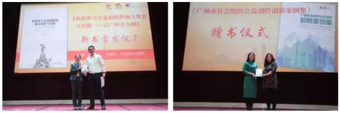 会上举行了《政府参与公益创投的地方探索与实践——以广州市为例》和《广州市社会组织公益创投创新案例集》的首发仪式,并向创投主体代表赠书。