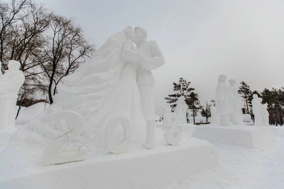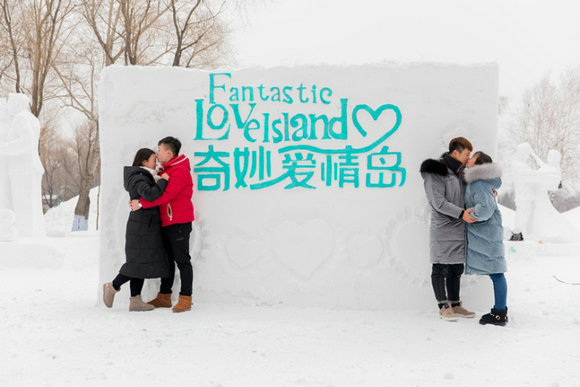 此次,黑龙江省旅游委“建造”的奇妙爱情岛,在雪雕林立的景区内独树一帜。取材真实故事的爱情雪雕,重现了许多情侣间怦然心动的美好时刻,成为太阳岛上最浪漫的一道风景线。或是男孩第一次怯怯地牵起初恋的手,或是热恋中的情侣共舞一曲浪漫华尔兹,又或是婚礼上新郎轻轻地吻了新娘的面颊……