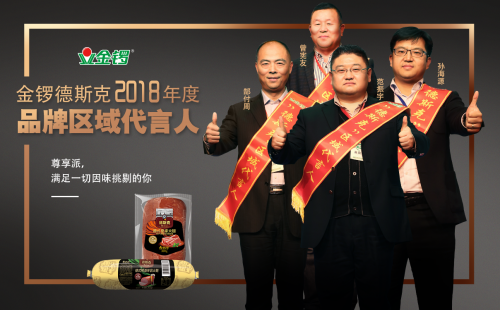 5大系列产品,1年激烈竞逐,20位品牌区域代言人!2017年12月20日,在以“启航新征程 筑梦新时代”为主题的金锣2018年度熟制品经销商大会上,金锣首次开创行业先河,聘请了优秀经销商担任金锣2018年度“品牌区域代言人”。