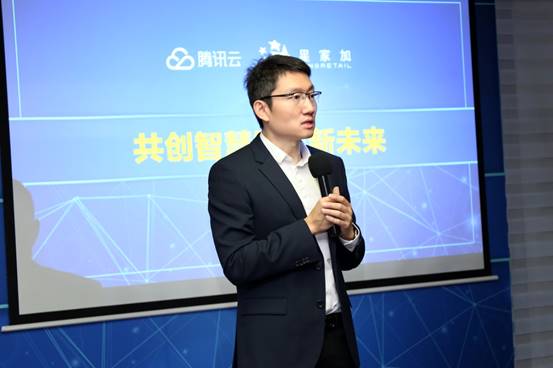 腾讯公司副总裁、腾讯云总裁邱跃鹏现场讲话 依托国内最大的社交平台,腾讯拥有海量的用户数据,结合云计算和大数据的能力,帮助企业更好的获得潜在客户,并减少运营成本。同时,腾讯云帮助企业维护好属于自己的数据资产,以“去中心化”的思路来服务好企业用户,让企业能够更大化的发挥自有的数据价值。更重要的是,腾讯云代表着一个全链路的营销模式,凭借腾讯海量的数据库,腾讯云将大数据和用户标签打通,发掘更大的获客潜力。 目前,腾讯云已经为众多零售品牌打造了一整套智慧门店解决方案,包括到店自动人脸识别,打通社交数据,建立个人消费档案,精准的个性化营销。同时,智慧门店解决方案通过区域客流量、浏览时间和消费动线,合理规划商品的摆放位置,安排客户的购物路线,从而优化店铺排序,真正实现降本增效。 全面连接腾讯与零售企业——星家加,让零售智慧起来 曾受邀参加腾讯“全球合作伙伴大会”并发表“智慧助力传统零售升级”主题演讲的星家加,是腾讯云的战略合作伙伴。 星家加总裁刘凯指出,作为全球智慧零售新生态引领者,星家加始终秉持着“去中心化”的原则,通过系统的行业解决方案推动智慧零售落地实践。
