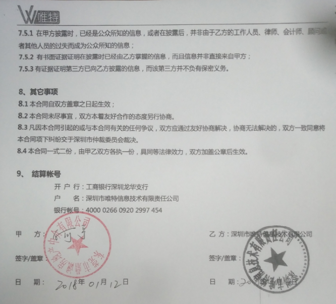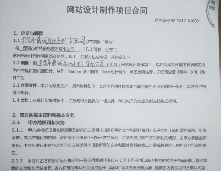 东莞市鼎诚房地产中介有限公司(以下简称:鼎诚房地产)于2018年01月12日和我公司深圳市唯特信息技术有限公司(以下简称: 深圳唯特)签订网站制作合同,合同编号: WT18112-A1669,合同金额6000元整。首付项目订金50%,3000元整,尾款3000元整,分两次支付。 双方从签订合同到网站上线合作都比较顺利,我方也一直按照合同规则流程制作,设计稿也全部给到鼎诚房地产审核通过,网站项目在2018年01月31日完成,网站也已经正式上线。由于鼎诚房地产对接人王经理离职,现在鼎诚房地产公司认为是王经理跟我公司签订的合同,不愿意支付剩下网站尾款。 直至2018年3月27日,在鼎诚房地产不给予合理解释,且仍拖欠我司尾款3000元整不予支付,鉴于对方已严重违背合约精神,且在我司人员已多次电话、微信交涉无果。在此温馨提示,主要是提醒大家以后谨慎和鼎诚房地产公司合作。 中国首席商业资讯门户;更多内容请关注中国商业网各频道、栏目资讯。 免责声明:凡本站注明 “来自:XXX(非中国商业网)”的新闻稿件和图片作品,系本站转载自其它媒体,转载目的在于信息传递,并不代表本站赞同其观点和对其真实性负责。 |