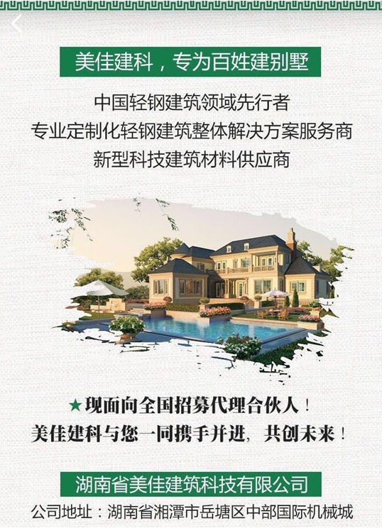 记者向建筑业的一位资深从业者曹先生了解到,未来建筑行业很大程度上将由装配式建筑主导,尤其是农村自建房市场,随着传统建筑材料成本的增加,以及政府的宏观调控,传统建筑材料及建筑方式不得不退出历史舞台,那么每年40000亿的农村自建房市场必须有新的建筑形式及材料来替代。轻钢结构作为装配式建筑形的一种,凭借其优势,被好多老百姓所认可,随着时间的推移,农村建房将首选轻钢结构房屋。轻钢结构房屋是当前建造工期最短最快绿色环保节能的房子。作为一种新的建筑体系,它颠覆了传统建筑产业,也颠覆了无数人的传统观念,更颠覆了人们的生活方式。 曹先生的话引起了记者的兴趣,为了更深地了解这一绿色新型的建筑体系的优势所在,记者找到了轻钢结构行业内的佼佼者——湖南省美佳建筑科技有限公司的一位负责人,期待能从他这里得到更专业的行业信息。 湖南省美佳建筑科技有限公司,在湖南乃至中南地区一直以绿色建筑和住宅产业化闻名,也是该地区住宅产业化和绿色建筑的集成供应服务商。记者了解到,为了保持技术领先,美佳建科不仅拥有自己的专业研发团队,而且还与专业院校技术合作,规范生产,遵守生产流程,严控产品质量,保障材料品质、科学施工。所以,记者相信,美佳建科作为建筑行业的良心企业和轻钢结构市场的排头兵,一定能给出一些关于轻钢结构建筑行业的专业信息。