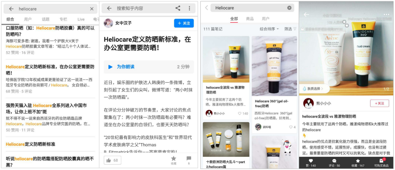3月25号晚11:00,本该是夜深入睡的时候,然而天猫国际的小二们却异常兴奋,一条消息刷爆了他们的工作群:在中国市场零基础的西班牙防晒品牌Heliocare,仅开业当天,便实现了80万元的销售额! 这是一个让天猫国际惊掉下巴的数据:此前,天猫国际结合了近百例欧洲美妆品牌的开业数据,“近乎苛刻”地要求Heliocare必须实现整个开业活动100万元的销售指标。孰料,品牌在开业当天便基本完成。 而更加出人意料的地方在于:淘宝站内,Heliocare的广告投放成本仅为2万元左右!同时,官方此前也没有提供任何流量支持! 电商圈和营销圈内,闻听此事的人纷纷私信转化力营销机构:作为该品牌的在华营销顾问,你们究竟是如何帮助Heliocare做到这一切的? 今天,我们便进行一次深度复盘,以期相互探讨、共同成长。 品牌的背景与困局 Heliocare(荷丽可),西班牙防晒药妆品牌。 在欧洲与东南亚,消费者基本通过医生推荐,到线下药房渠道购买该品牌的产品。从全球范围来看,其产品以口服防晒胶囊最为热销。 然而,进入中国市场后,Heliocare首先遇到了两大难题: 其一,渠道选择。在中国,Heliocare没有取得相关的资质授权,因此无法通过医生与药房等专业渠道进行销售。 其二,产品选择。中国消费者很少接触口服防晒产品,若延续此前的成功经验,将口服防晒作为主打,那么市场风险将不可估量。 转化力的策略思考 既然无法进入专业渠道,那么索性进入大众消费渠道。对于海外品牌来说,仍处于红利期的天猫国际,便是最佳平台。 在中国毫无认知基础的Heliocare,须利用天猫国际,以最小成本启动品牌运营;通过市场传播与销售,逐步积累名气与势能。只有走好这一步,才能为后续全渠道分销体系的发展,奠定最坚实的基础。 至于产品,转化力必须拒绝品牌客户“按照成功经验来选品”的盲目要求。没有电商类目大数据与中国消费者的综合调研,便不可能贸然开展选品与定价等工作,开业规划也无从谈起。 市场调研与产品定位 首先,根据Heliocare在全球的通行定价标准,初步判定目标消费者集中存在的地域,应为中国的一线/二线顶尖城市。 因此,转化力选择了国内的8大城市,作为调研的目的地:北京、上海、广州、深圳、天津、杭州、南京、成都。联手专业机构,在每个城市邀约6-8个典型消费者,进行线下座谈调研。 上海座谈会现场,通过单向玻璃观察受访者 调研结果不负所望,充分印证了转化力此前的担忧:中国消费者暂时无法对口服防晒产品保持开放接受的态度。而与此同时,她们纷纷表达出对Heliocare旗下另一款产品的浓厚兴趣——360°室内防晒。 这一调研结果,完全颠覆了品牌客户原本的想法及其备货计划。西班牙总部的市场总监亲临提案现场,参与讨论。 Heliocare市场总监参与讨论 最终,Heliocare全盘接受了转化力的意见:以360°系列防晒为核心产品,构建产品梯队。面对充分竞争的防晒市场,Heliocare凭该系列产品切入室内防晒领域,帮助消费者解决室内办公时,电脑/手机屏幕对肌肤产生辐射的痛点。产品对标日本Anessa(安耐晒)进行定价。 流量也的确受到360°防晒产品的吸引 最后,基于上述产品策略,完成备货;遵循天猫国际防晒类目的年度生命周期,制定营销节奏和预算配比。 品牌定位与形象包装 基于产品在华策略与品牌全球规划,为Heliocare制定在华定位。 近年来,西班牙药妆在中国日趋火爆,Heliocare绝不可放弃“西班牙药妆”这么宝贵的认知资源!哪怕它不是最快进入中国并提出这个概念的品牌,也要通过饱和进攻的市场传播手段,实现心智占位。 同时,为区隔行业竞品、夯实自身定位,Heliocare持续输出佐证,给专业药妆形象增加信任背书。 转化力在slogan、主KV等品牌核心资产部分,聚焦塑造“哈佛医学院15年权威成果”这一概念,不断强化Heliocare的专业药妆形象。 在品牌客户提供的海量资料中,精细挑选和提炼更多佐证,包括美妆杂志奖项、时尚达人推荐、国际论文发表等等。 参考欧美小众药妆品牌的页面风格,设计Heliocare中文官网。 搜索卡位与口碑建设 在消费者购买决策的逻辑流程中,必不可少的一环,是信任。而这点对于一个毫无认知基础的品牌来说,恰恰是非常短缺的。因此,需要提前做好比引流更重要的工作——全网构建信任。 首先,做好搜索卡位。当消费者被种草一款全新品牌的产品时,常规情况下,会首先打开搜索引擎,检索该品牌。因此,输入品牌词后,一旦下拉弹出负面的搜索信息,消费者便会对新品牌的印象大打折扣。转化力通过专业的SEO优化,使下拉词保持正面性,并关联更多品类词。 其次,邀约权威媒体报道。在搜索体系中,权威媒体的报道拥有极高权重,更容易排在搜索结果的前列,被消费者看到。因此,转化力选择综合门户+垂直门户+地方站的媒体组合方式,邀约其进行采访与报道。 再次,邀约知乎达人答题。除搜索引擎外,目标消费者同样极有可能登陆知乎app,搜索相关问题。因此,转化力整合知乎达人资源,围绕防晒产品与Heliocare品牌,分享干货知识。 最后,邀约小红书素人试用分享。小红书,是目前中国消费决策参考最核心的阵地之一,在美妆、美搭等类目尤其如此。因此,转化力邀约了小红书平台上的多位真实素人,来试用Heliocare产品,并将其试用体验心得,以笔记的形式分享出来,为潜在消费者解惑答疑。 通过搜索卡位与口碑建设,Heliocare在全网范围内,逐步形成了积极正面