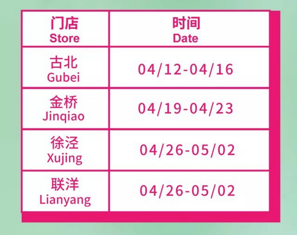 (详情请见门店海报或洽店内工作人员) 4月12日起,上海古北、金桥、徐泾及联洋门店将分别举办缤纷周年庆活动,现场更配有精彩的音乐表演和试饮环节,诚邀与会者尽情品尝来自各优质酒庄的纯正佳酿,一起体验美酒文化!