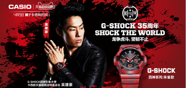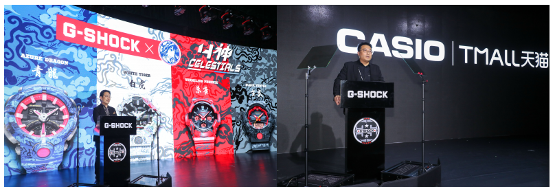 卡西欧计算机执行董事海外营业统辖部长山下和之(左) 阿里巴巴集团天猫事业部服装服饰事业组-箱包手表高级总监海滔(右) 揭秘上古图腾,4月9日卡西欧天猫超品日四神朱雀款天猫首发。 令无数粉丝振奋的是,当天新加坡国宝级设计师JAHAN,携手圈中好友吴建豪,也是G-SHOCK四神形象大使和卡西欧天猫旗舰店明星店长,两人一同登台揭开腕间图腾的前世今生,以及分享各自的时尚理念。