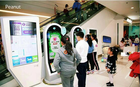 PEANUT领位机器人在商场引领带路 最后,就是商家都比较关注的领位机器人是否“真有用”,除了吸“睛”,PEANUT已经可以为商场管理者提供一些专业的数据。其拟人化的外形设计和机智幽默的对话会带给顾客参与兴趣,让顾客产生探索、发现的乐趣,而后便能大大提升与顾客的交互量,并将交互数据传输至管理平台,平台对数据进行统一存储与管理,机器人应用越多,数据量则越大,渐渐形成一个非常有价值的消费数据库。