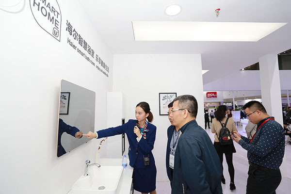 CITE2018开展首日,来自各地的参观者及媒体采风团成为海尔智慧家庭的首批“探秘者”。“海尔智慧家庭让我重新认识了中国的家电企业,已经由卖家电升级为智慧家庭解决方案的提供商。”来自腾讯的记者不禁感慨道。在海尔现场的“家”中,智慧客厅、智慧厨房、智慧浴室可以实现全场景联动。馨厨冰箱作为“家”的中心,可以联动整个厨房,并根据智慧浴室的魔镜、智能马桶盖、体脂秤等收集的数据,真实记录和追踪用户的身体健康数据,精准推荐健康计划膳食方案,帮助用户智慧购买安心食材,并推荐菜谱。还可将菜谱直接联通到烤箱和吸油烟机、消毒柜,轻松实现一键烘焙、烟灶联动、自动消毒。在准备其他食材的过程中您可能会觉得无聊,客厅中精彩的足球比赛,可以同步到馨厨冰箱屏上。如果有朋友来敲门,冰箱的显示屏还可立即切换到门禁可视系统联通安防。据了解,海尔智慧家庭依托开放的生态平台不断对智慧场景进行拓展升级,全球独家首发“4+7+N”全场景定制化智慧成套解决方案,基于4大物理空间和7大全屋方案,各种空气、用水、洗护、食物、安防、娱乐等智慧生活需求均可一站满足,且实现智慧场景无限定制。