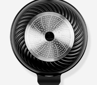 考虑到这两点,黑骑士不粘锅采用厚底薄壁设计,保证锅内温度稳定性,锅底使用微感热敏导磁底,旋风结构设计,由41导焰槽组成,形成热能漩涡,可延伸火焰的加热部位,使锅底受热均匀,最后达到减少油烟的效果。