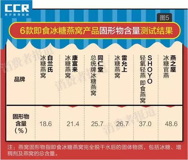 (图片来源网络) 李耿解释说,燕窝是一种特殊的食材,经过3-4小时的泡发,燕窝的发头可达6-8倍。(发头是指燕窝在浸透后,在重量上与干身时的差异,倍数越大,即发头越好。)3克的干燕窝经过泡发后,足以炖煮出一碗浓浓的燕窝。以一碗燕窝150克为例,固形物含量超过25%,燕窝酸含量约140mg,此前市面上盛传的即食燕窝中3%为燕窝97%为冰糖水的配比,是符合燕窝科学食用方法的。