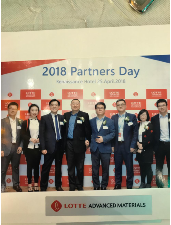 同益荣获乐天“最佳合作伙伴奖” 同益股份不仅在现场收获业界众多赞誉,展会的第二天即4月25日晚,更在乐天尖端材料株式会社举办的客户答谢会上获颁“最佳合作伙伴奖”。