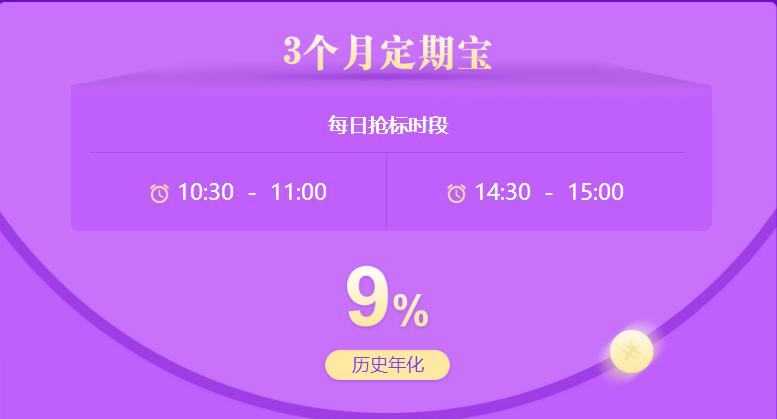 5月7日-5月9日,点滴身边隆重上线了“五月秒杀不停息”活动,活动期间,每天上午10:30-11:00、下午14点30-15点,将会有两场供大家秒杀,3个月定期宝,加息6%,历史年化增至15%!仔细算一算,这次不抢,岂不亏大了?