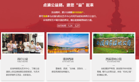 大爱无疆,在公益的路上,点滴身边从未停止,如今我们迎来了“阳光计划”第四季:“益”路向善,拥抱“阳光”! 5月10日至5月12日期间,出借人只需出借点滴身边的定期宝产品,除了获得收益外,单笔出借满指定额度,即可获得对应现金或工艺品奖励,每日累计出借前三名,可荣膺“阳光爱心大使”称号,分别获得300元、200元、100元出借红包的奖励。 另外,在第四季“阳光计划”中,点滴身边还将真正与你去拥抱“阳光”——在活动期间累计出借额前15名出借人,可免费参加杭州两日公益行! 届时我们将实地考察阳光艺术中心,了解公益道路上的品牌故事及荣获奖项,与艺术家携手制作工艺品,解锁工艺奥秘并合影留念;漫游西湖,领略雷峰塔、西湖、飞来峰、灵隐寺的独特魅力,感受上有天堂下有苏杭的醉人风景;同时我们还将参观西湖湿地公园坐船漫游芦苇荡、探访隐于林中的秋雪庵、梅竹山庄等古迹,体验“杭州之肾“的清幽,岂不也是一种惬意快哉?