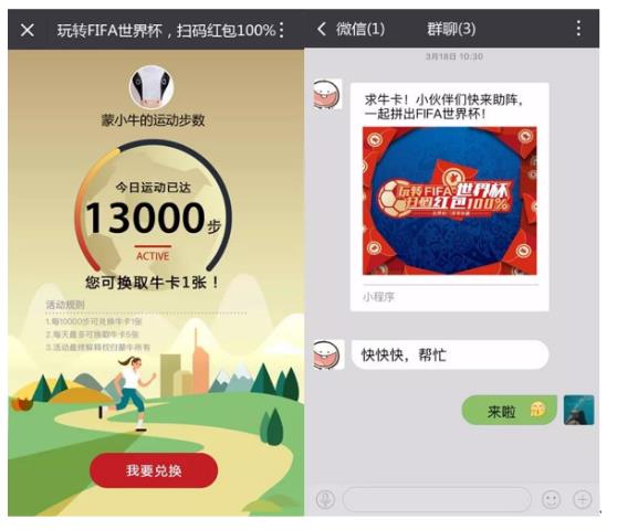 线上:集齐真牛卡、超牛卡,兑换世界杯门票 蒙牛牛奶全民集卡赢门票活动从3月15日起至6月13日结束,可以通过三种方式获得真牛卡或者超牛卡:第一种,购买蒙牛牛奶指定产品,除了立拿红包,同时可收获蒙牛牛卡;第二种,微信运动,1万步兑换一张真牛卡;第三种,微信社交互动,可以向好友索取或者赠送。