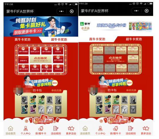 集齐7种真牛卡就可参与抽奖。集齐7种真牛卡+1张铜牛卡/银牛卡/金牛卡,除有机会获得999元红包外,还可获得蒙牛牛奶提供的世界杯门票或世界杯双人游豪华套餐,奖品简直太丰厚了!