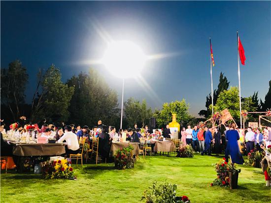 夜幕降临,期待已久的欧式酒庄爱情音乐酒会正式拉开序幕,百余位宾客在华东百利酒庄草坪上相对而坐。大家看着刚刚结束的520爱情定格互动活动的视频及趣味照片,现场不时引发出一片欢呼声,气氛非常活跃。酒会现场除了乐队演出、品酒赏酒活动外,华东葡萄酒公司还准备了有趣互动游戏以及品牌对戒、尊贵红酒等神秘大礼。在璀璨烟花和动人音乐下,一轮轮的活动抽奖将酒会推向了最高潮。在一片欢声笑语中,华东·百利酒庄第一届酒庄节完美落幕。