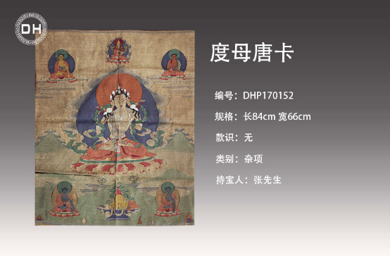 worth savoring. 唐卡这种以宗教内容为主的卷轴画,既是佛教、苯教信徒修行的重要辅助工具,又是一种令人赏心悦目的艺术品。唐卡的表现内容包罗万象,既有纯宗教意义的神灵造像内容,又有涉及政治、文化、经济等方面的内容,呈现出藏区独有的审美信息。当下,随着生活内容的不断丰富,唐卡爱好者的队伍逐渐壮大,欣赏唐卡、收藏唐卡已成为雅趣,给人以心灵的平静和无限的收藏乐趣,凝固历史、展现宗教美感的唐卡当然是众人所望的收藏品。故而,唐卡收藏也迎来黄金期,成为国内外收藏市场上的新贵,价值逐年攀升。如您想收藏张先生此幅度母唐卡,欢迎致电广州德鸿《鉴宝讲坛》栏目咨询藏品更多详情! Thangka, a scroll