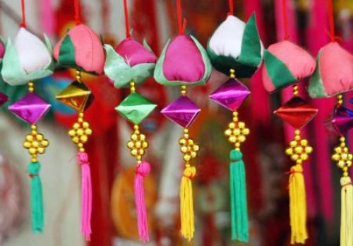 拴五色丝线 中国古代崇拜五色,以五色为吉祥色。因而,节日清晨,各家大人起床后第一件大事便是在孩子手腕、脚腕、脖子上拴五色线。系线时,禁忌儿童开口说话。五色线不可任意折断或丢弃,只能在夏季第一场大雨或第一次洗澡时,抛到河里。据说,戴五色线的儿童可以避开蛇蝎类毒虫的伤害;扔到河里,意味着让河水将瘟疫、疾病冲走,儿童由此可以保安康。