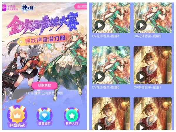 6月15日至7月5日,声音娱乐APP半边鱼与超幻想风手游《神无月》将首次跨领域合作,在线上联合举办“全次元声优大赛”。此次活动旨在通过游戏主题的趣味配音,寻找属于中国的新一代声优潜力股。 “声优”一词源于日本对配音演员的称呼,在日本,声优产业的蓬勃发展离不开完善的声优选拔体系和优质的动漫文化土壤;而在中国,声优行业的发展则略显尴尬 -- 动漫和游戏对声优都有着不小的需求,但本土声优行业人气相对低迷、待遇偏低的生态环境导致不少有成为声优潜力的年轻人放弃了梦想。面对这样的现状,半边鱼APP希望可以通过多样化的活动,孵化出多元化的声音玩法,唤起声音爱好者对配音的热情,鼓励他们在致敬日本声优的同时,开创属于中国本土的原创声音作品,为他们提供更多配音机会,优化声优行业的生态环境。