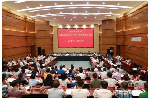 “党委听取生产经营情况汇报,是企业党的建设工作的重要内容,也是加强和改进企业党建工作的内在要求。”会议伊始,茅台集团党委书记、董事长、总经理李保芳就在主持会议时开宗明义地表示,召开这个会议,主要是充分发挥党委“把方向、管大局、保落实”的作用,以更好服务生产经营各项工作,核心在于让大家集中亮成绩,主动找差距,自觉补短板,鼓励和鞭策各级干部想大事、议大事、抓大事。 茅台集团党委副书记赵书跃,茅台集团党委委员、副总经理张德芹,茅台集团党委委员、副总经理、总会计师杨建军,茅台集团党委委员、纪委书记卓玛才让,茅台集团党委委员、总法律顾问刘汉林,茅台集团党委委员、副总经理杨代永参加会议,茅台集团及股份公司其他领导王莉、张家齐、何英姿、万波、李明灿、王崇琳、钟正强、罗国庆,以及茅台集团财务处、生产管理部等7个部门和11家子公司分别向集团党委作工作汇报。 一天半的党委会,不走过场、不搞形式,只务实、只唯实,大家的工作汇报都简明扼要、言之有物。茅台集团党委还从汇报情况和工作情况两个方面,按好、中、差三个等级,对各子公司和部门给予评价。