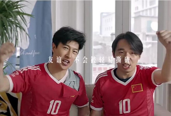 第二支视频名为《顺子的球衣》,时间追溯到2002年中国进入世界杯,两个发小因为争抢穿着而撕破了那件珍贵的中国队球衣,长大后的两人再次相遇,当初的不理解和矛盾也因为遗忘了朋友间该有的包容而再次爆发。奇幻的“15min聚场”再次出现,唤醒了男主对这段真挚友情的重视,一件从聚划算购买的崭新中国队球衣和那件撕破的球衣,再次穿在身上,在呐喊和欢呼中一同观看这届世界杯,文案“为友谊选择了一件撕不破的球衣”也成功点题。