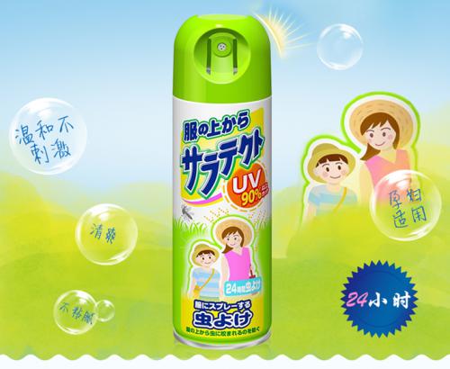 其中蕴含10%的驱虫成分避蚊胺(DEET)以及清凉成分薄荷油,主要的防治对象是蚊子、黑蝇、虻、跳蚤、革螨、疥螨、臭虫等。使用方法简单便捷,摇匀喷雾,离开手脚等部位大约15cm的距离处喷涂,脸与脖子需要先喷在手心,然后再把手上的液体涂抹到脸上与脖子处,长效驱蚊,清凉降温。 EARTH制药•衣物专用,可防紫外线的驱蚊喷雾 这款独具特色的衣物专用Saratect ,同时配合了防蚊有效成分及紫外线吸收剂,可防止有效成分被紫外线破坏,持续 24小时温和防蚊驱虫,且90%隔离防晒。这款产品的三大特点为:防紫外线、温和低刺激、24小时长效驱蚊。蕴含10%的避蚊胺(DEET)主要防治对象与使用方法与上述喷雾相同,长效驱蚊防晒,不含酒精,温和不刺激。