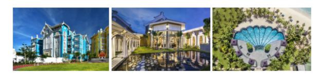 酒店由被《时代》杂志赋予“奢华度假酒店之王”美誉的Bill Bensley精心打造,是以20世纪早期的设计风格及法国殖民地传统建筑风格为灵感的奇幻度假村。酒店的设计构思以学院为蓝本,纪念为达尔文的进化论奠定基础的法自然主义学者Jean-Baptiste Lamarck,客房大楼也均以不同的学科系别命名。被Bensley用以客房室内设计的红色、绿松石色、蓝色及绿色色系,与翡翠般的海洋及绿意盎然的繁茂环境交相呼应,深色实木订制而成的家私和图案地板进一步提升了客房以及酒店走廊的舒适度与视觉效果。 Rue de Lamarck大道模仿古老会安市的街道,两旁建有融合了中国、日本和西方建筑影响且模仿传统商住两用建筑的房子。宾客可探访街上出售精致手工艺品的精品店、酒店各色餐厅及富国岛上备受赞誉的水疗中心之一。蘑菇形状的家私及绘有动物和花卉图案的墙壁贯穿水疗中心的室内设计始终,而以蘑菇画框装饰的天花板,为整体空间更添超乎现实的奇幻色彩。 动感大都市——新加坡南岸JW万豪酒店