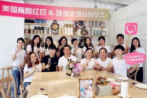 美国两颗红豆与环球求缘集团在广州举行合并仪式。从2018年8月1日起,环球求缘将正式并入EMBRACE INCORPORATED集团,旗下品牌有: 两颗红豆 Vivid Pink(美国) 上海亮粉网络科技 上海蓝色摇篮商务咨询 西安拥抱网络科技 广州求缘