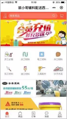 全渠道引流,为独立装修人搭建一站式服务平台 在装小哥和易订货合作的过程中,互相成就,探索出“新零售”在装修辅材行业的全新应用。 秉持“一站式采购、扁平化管理、极速下单、高效物流”的核心理念,装小哥对接辅料行业95%的大牌厂商,借助易订货为装修工长们提供了一站式的辅料选购、配送和售后服务平台,从供应链、管理到物流提供全方位服务,既帮助装修人节省了大量的时间和人力成本,让人力、物力在整个平台上高速运转。 在易订货的支持下,装小哥在短时间内快速搭建起以“品牌APP+订货小程序”为入口的线上辅料配送超市,良好的用户体验,让装修工长订购装修辅料再也不会受到时间和空间的限制,只要打开手机,即可随时随地快速下单。对于装小哥来说,通过易订货搭建的自有商城,可以在短期内实现产品、价格、渠道、促销等与目标客户群的对接,减少了中间环节,既节省了大量成本,又达到了品牌宣传和提升销量的目的,为后续的服务提升创造了更多的可能。 重视品牌塑造的装小哥,一开始就看中了易订货的APP专属定制服务。在短时间内发布的装小哥APP,从Logo,引导页、登录界面等,均按谷总的要求“私人订制”,区别于家装行业传统给人的陈旧印象,装小哥APP商城的界面风格让人眼前一亮,不仅设计美观,而且分区合理,重点突出,充分考虑到下游客户的订货习惯,确保即使是触网不深的装修工长也能快速找到需要的产品。在保证了用户体验的同时,也在行业装修人中树立起装小哥专业的品牌形象。