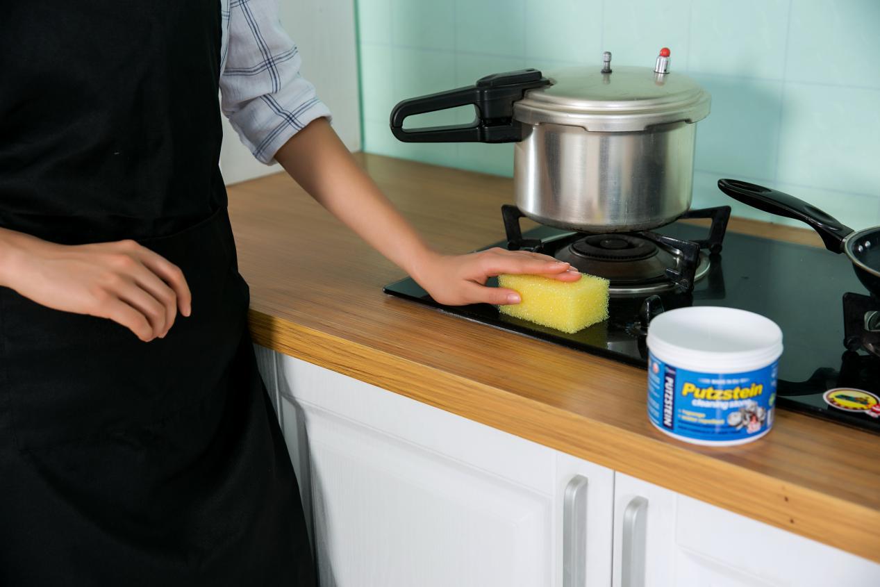 清洁抛光保护三合一:焕发表面自然光泽、荷花效应、保护表面持久如新。 几乎厨房里所有的东西都可以用O-Quick清洁石进行清洁。