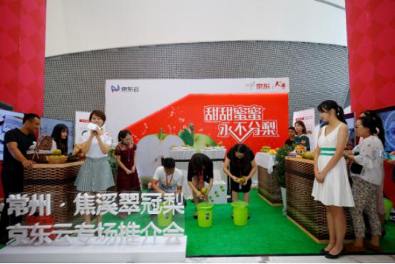 焦溪翠冠梨,是种植在江苏省常州市焦溪镇的一种特殊品种的梨,以“皮色嫩黄艳丽,上口清脆溢香,水份充足鲜甜”著称。每年8月初,焦溪翠冠梨就开始上市,并延续此后28天的销售旺季。因此,焦溪翠冠梨有“一年孕育,只待28天”的说法。 瞅准焦溪翠冠梨销售期,京东云在常州市委市政府、天宁区委区政府支持下,携手4家常州翠冠梨企业走进京东,展开推介活动,以期用“焦溪”翠冠梨产地品牌,促进农业增效果农增收,助力常州翠冠梨“互联网+”产业升级发展。