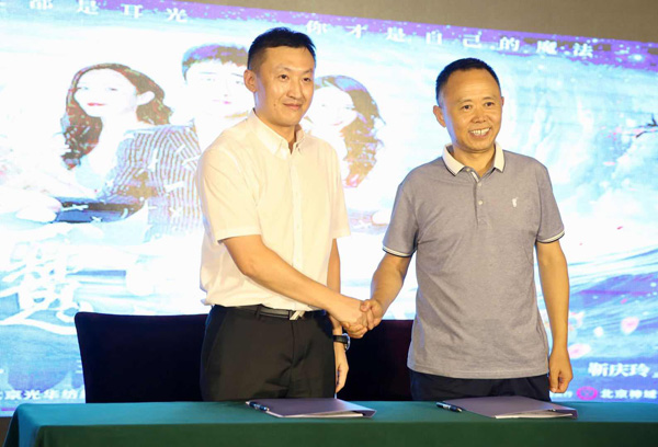 《魔法耳光》讲述的是一个无所事事的富二代主动找抽的奇幻喜剧故事,影片中上演了一场场考验人性、欲望的闹剧,百人打脸换取一次改变过去的机会,剧情荒诞曲折、多重反转,令人捧腹大笑,又令人感动落泪,还教人冷静思考,重新审视自己的内心,意义深远。 值得注意的是,在发布会上,出品方北京华文得道广告传媒有限责任公司和合作方北京光华纺织集团有限公司完成了影视战略合作签约仪式,双方表示未来将会在影视领域的各方面展开长期且深入的合作,共促发展。