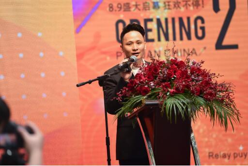 浙商联盟集团服饰有限公司总经理钟铭 紧接着,浙商联盟集团服饰有限公司总经理钟铭在热烈的掌声中走上演讲台,为此次启幕试营业典礼致辞,钟铭总经理阐述了濮院作为时尚名镇发展童装产业的天然优势,确立了濮院童装名品港致力于打造成为针织毛衫童装王国的雄伟目标。