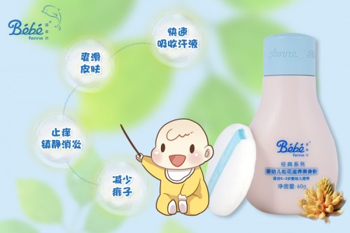 2、粗心爸妈护理不当 月龄小的宝宝常常会溢奶、流口水、出汗,这些液体滞留在了皮肤的褶皱处,不及时清洁,没有保持肌肤干爽,就会刺激娇嫩的皮肤,以至于引发炎症,导致长热痱、皮肤发红、淹脖子等。 治疗和预防“夏日危肌”,试试它们 1、松花爽身粉,保持肌肤干爽 爽身粉是许多家庭的夏日必备品,而法国婴姿坊婴幼儿松花滋养爽身粉内的天然松花粉、薰衣草提取物、库拉索芦荟叶提取物、红松籽油能够快速吸收汗液、爽滑皮肤、止痒镇静消炎,减少痱子的发生。在洗澡后清除褶皱处的“脏东西”,为宝宝拍上一层薄薄的法国婴姿坊爽身粉,能让宝宝的肌肤变得干爽舒适,并且宝宝身体上还会伴有淡淡的芳香。
