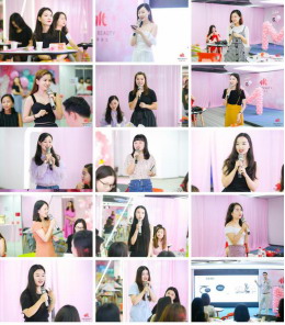 在产品体验和服务咨询环节,微交会现场掀起了阵阵高潮。大部分参观者在体验产品和平台的服务后,纷纷签约、洽谈合伙人事宜。在展会结束当天,已经有三百多位美女加入了唯美美妆平台,成为了唯美合伙人。 合伙人代表答谢致辞 1 合伙人代表,分众传媒高级经理王梦茹说:“从遇见唯美美妆的那天起,我觉得变美其实很简单。”
