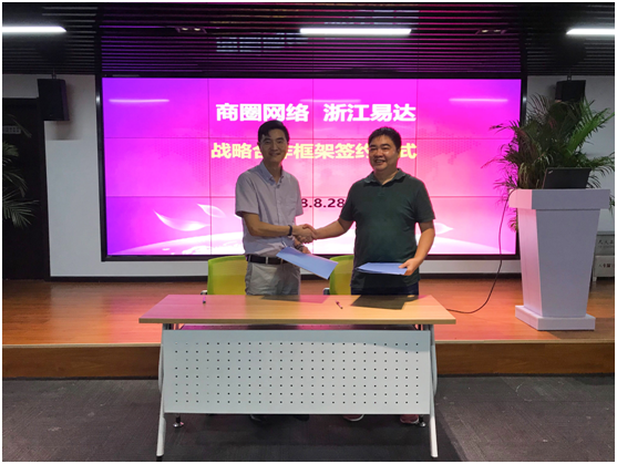 (左起)浙江易达总经理陈新凯与商圈网络总经理虞洪强友好握手,示意双方开启战略联盟 8月28日,氤氲着秋收气息,杭州商圈网络技术有限公司(以下简称“商圈网络”)与浙江易达供应链管理有限公司(以下简称“浙江易达”)就商拍优加图像服务在云栖小镇达成战略合作,双方将共同向外输出人才培训体系和图像服务。 志同道合,便能引其类。 商圈网络一直以商业领域的图形图像解决方案为基点,为客户提供更具吸引力的商品展现和营销解决方案。