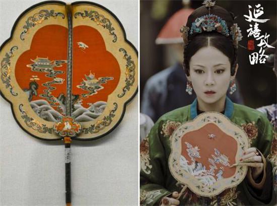四、缂丝 值得一提的是,剧中的扇子和服饰都用到了缂丝工艺。要知道,作为从宋朝以来皇家的御用织物之一,缂丝素有“一寸缂丝一寸金”的说法。而清宫织绣类团扇以缂丝最为精美。 缂丝又称刻丝,是中国丝绸艺术品中的精华。这是一种经彩纬显现花纹,形成花纹边界,具有犹如雕琢缕刻的效果,且富双面立体感的丝织工艺品。 例如太后所握团扇,仿制了清朝沙面贴绢仙鹤桃树图团扇;高贵妃所用之扇,则仿制了清朝红色缂丝乌木雕花柄团扇。