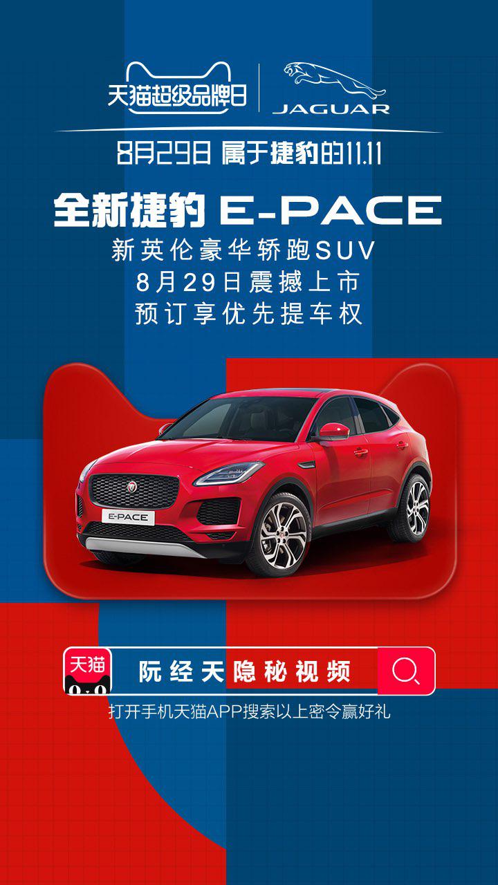 沉浸式超级试驾X多重优惠,全新捷豹E-PACE优先提回家 据悉,发布会前期,捷豹联手天猫和代言人阮经天发布微博话题#阮经天隐秘视频#引导天猫旗舰店渠道关注,并设置每日打卡抽取巨额奖品鼓励,持续为发布会注入流量。全新捷豹E-PACE发布会当天更是一场视听盛宴,有花样炫酷的3D展示,有精彩纷呈、英伦格调十足的歌舞剧《I AM E-PACE》。演出后期,阮经天更是融入其中,一起演绎歌舞剧,不仅让观众一饱眼福,更诉说了自己与E-PACE之间的品牌故事。 据悉,为了这次天猫超级品牌日,双方可谓诚意十足。天猫为品牌贡献了亿级品牌曝光,而捷豹天猫旗舰店更是推出优先提车权、2000元加油卡、明星亲笔签名神秘礼物、免费加装捷豹“驾控管家”(功能超强大)、厂家贴息:24期零利率金融方案等多项特别权益,折算下来直接利益达3-4万,前所未有的购车福利,吸引了大量的在线订单。捷豹天猫官方旗舰店作为首发平台,打着家族最强SUV的旗号,让E-PACE首次亮相天猫就掀起了认购狂潮,赢得不少消费者的爱慕。消费者可自行选择车型和提货门店,交付定金后即可凭借电子兑换券到门店提取,整个活动期间便卖出455台。