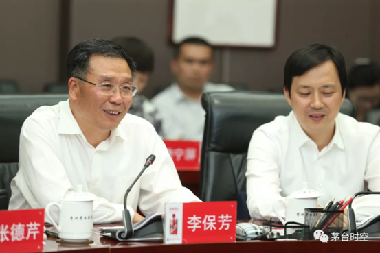贵州省人民政府副秘书长、贵州省大数据局党组书记、局长马宁宇,阿里巴巴集团党委副书记、合伙人、阿里云总裁胡晓明,阿里巴巴集团合伙人、副总裁闻佳、天猫总裁靖捷、阿里巴巴集团参谋部副总裁李少华、阿里巴巴战略合作副总裁陶雪飞等高管与会。茅台集团党委委员、副总经理张德芹,茅台集团党委委员、总法律顾问刘汉林,茅台集团党委委员、副总经理杨代永,茅台集团总工程师王莉,贵州茅台酒股份公司副总经理万波、贵州茅台酒股份公司副总经理王崇琳以及相关负责人出席座谈。 李保芳:为茅台阿里合作定调 “今天马云主席到访,最重要的信息就是为双方未来的合作定下调子,”座谈会上,李保芳直入主题。 座谈刚开始,李保芳首先向马云长期以来对茅台的关注与支持表示了茅台人的谢意,“过去这些年,马主席从花园湖畔到大江南北,从国内到国外,在历次演讲中频频为茅台点赞。”