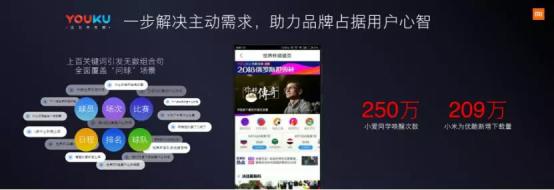 横向升级主要表现为万物皆媒介正在小米营销飞速实现,其中人工智能语音交互平台“小爱同学”已成为最具代表性的入口级媒介,强大的连接性特征,让小爱同学具备独特的穿越各种场景的能力;纵向升级则表现在小米营销持续深挖已知媒介的能力,以及进行丰富的媒介组合提升触达效果。其中,大屏OTT的媒介能力正随着硬件、软件、内容全维度创新逐层递进;结合起来结果则是使营销更加贴合用户的实际使用场景,结合品牌营销来服务用户的真实需求。 现场提供了一系列具有说服力的案例,比如“小爱同学x优酷世界杯”的案例,优酷通过投放“小爱同学”这一新媒介,大幅度提升广告效率。带动优酷世界杯实现近70亿曝光,最终实现优酷新增209万的下载量。