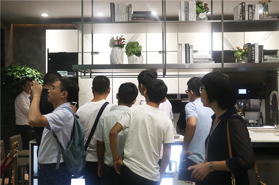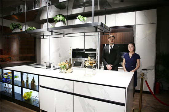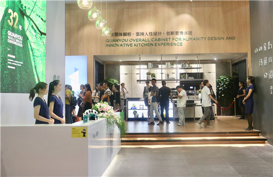 橱柜展示区,全友“无极”橱柜大获好评。这款橱柜融合中、西式厨房特点,满足现代人对厨房的功能需求。“意大利回旋折门”“智能升降插座”“360°旋转吧台”“隐藏式折叠餐桌”等智能设计打造高端厨房体验。