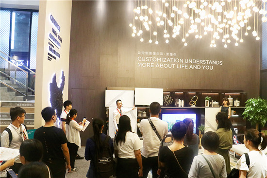 设计体验区,全友CDS数字化系统让游客与海量家居产品近距离接触。全景方案展示+产品快速交付+海量方案资源+精细管理客户资源,实时提供定制化家居方案。