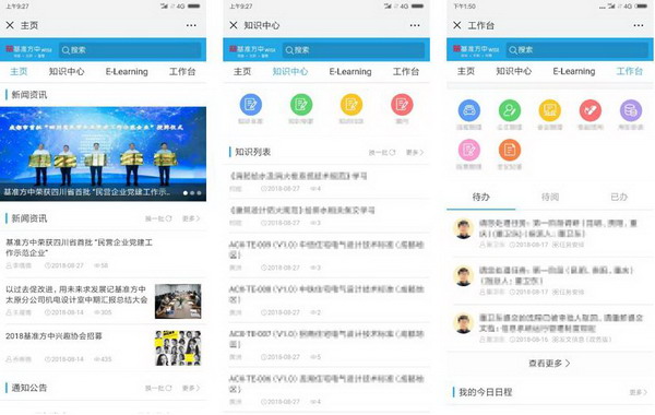 基准方中建筑设计有限公司是中西部领先、全国一流的大型综合建筑设计服务企业,客户以地产百强企业为主,部分项目已成为所在城市地标,如成都、重庆、西安万象城,棕榈泉中心、晶蓝半岛、蔚蓝卡地亚等。 公司在中国民用建筑设计市场排名中位列民企榜第3,总榜第9,并屡获“全国勘察设计行业优秀民营设计企业”、“当代中国建筑设计百家名院”等荣誉。 公司现拥有20个分子公司及各级管理和专业技术人员4500多人。伴随着企业不断壮大,大数据、云计算、移动互联网等新技术的日益普及,和集团一体化管控、跨区域协作、知识资产复用、培训赋能员工等需求的涌现,基准方中认识到必须重构“知识化、移动化、平台化、智慧化”的企业协作平台,才能更好地支撑未来数字化时代的创新发展。 选型思考 通过多方造型对比,基于以下方面,基准方中选择蓝凌一起进行多期合作: 1、协同办公平台先进:可支撑多维门户构建、多领域流程应用,PC+移动多端一体化; 2、知识管理应用成熟:以知识仓库为首的多功能知识应用,覆盖企业知识从收集、分享到应用的全周期管理,可支撑知识多业务场景的应用; 3、学习培训系统可靠:方便构建线下线下自主学习平台,统一管理学习活动、企业讲师、课程等资源进行,有利于打造学习型组织,帮助企业员工更好成长,同步企业发展。 方案规划 携手蓝凌,基准方中决定构建集“协同办公+知识管理+学习管理”三位一体的全新协作平台,并通过统一门户、统一流程、统一移动、统一应用、统一知识、统一集成,促进以人/角色为导向的信息聚合,提供一站式的全业务应用体验和随时随地随需的碎片式办公,支持企业更好发展。 应用场景 多专业、多领域门户,实现知识大连接:基准方中业务范围包括咨询顾问、规划设计、建筑设计、工程设计、环境景观设计、EPC、BIM、绿色建筑设计和建筑产业化等领域,每天都会产生大量知识,如何让相关知识快速汇集,高效连接用户? 基准方中WISE知识中心采用互联网化应用设计,专业化、移动化知识门户,向导式操作,以用户为中心,最大化便捷员工获取知识。在这里,员工可以容易地找到最新的技术资料、经验案例、项目精品图库、公司各层级流程制度等知识内容。 新人门户、技术质量门户、结构、给排水、电气、创意、BIM、绿建、IT信息等专业门户,让知识与流程快速对接,极大地方便了工作与学习。 多维度知识仓库,上传、分享一气呵成:基准方中全新的知识系统以知识仓库为基础,关注以员工为中心的知识全周期管理,包括创造、积累、共享及应用等环节。 在新平台上,基准方中可以完成对知识进行分类、置顶、推荐、添加标签、发布、新版本完善、收藏、点评、纠错、删除等全生命周期管理;轻量级知识内容展示,知识内容免下载免插件在线查看,降低客户端和网络依赖;同步移动端,可以随时随地通过手机轻松完成知识新建、分享和学习,让企业知识资产有效积累与增值。 多领域协同办公,提效规范化、流程化:以提升组织效能为目标,通过流程管理、工作日程、会议管理、等多领域协同应用部署,支持经营、运营、生产、人事、财务等业务高效协作。 从多类型电子公文的起草与流转,到建筑设计项目人员的快速变更,从待办、待阅的集中实时推送与处理,到关联合同信息的流程审批,从分公司的备用金申请到员工个人差旅报销……各类事务,员工皆可通过规范化流程,快速推进与落实。 打开移动门户,数千员工随时随地协作:如何让移动办公体验更好?如何让信息在手机上呈现更佳?如何让知识触达更多场景?基准方中通过移动门户快速配置,进行了有益的实践。 基于后台预置的多种门户样式和部件,通过向导式的可视化界面即可快速构建移动门户,包括主页、知识中心、E-Learning和工作台,带来便捷、高效的全新体验。 E-Learning平台,赋能知识型员工成长:基于该平台,每位员工都可以通过公司电脑、家庭电脑、移动终端便捷地学习到专家级讲师和优良制作团队打造的基准精品课程,这些课程都与员工在基准方中的实际工作紧密相连。 最新课程、最热课程,任员工选择,出差途中、上班车上、客户现场等,都可以通过手机学习自己感兴趣的知识,激发自主学习动力,点滴积累,达成默默成长……以考促学,短小精悍的“试卷”,方寸之间,随时随地都可以检验效果;答题卡让对错题一目了然,错题复盘等让知识掌握得更牢。 多角色培训管理,助力构筑学习型组织:系统除了助力员工学习成长,同时还实现了公司培训学习管理工作的信息化。线上报名、移动签到、线上考试等等,极大提高了培训组织、培训管理、培训跟踪、培训统计效率。 学员、老师、培训专员、系统管理员,各类角色都可通过该系统加强自身事务管理;从个人与团队的积分设置与管理,到课程的设计、上传与发布,从各专业老师的统一管理、教学安排到学员不同阶段的课程推送、学时统计……帮助企业打造更高效的学习型组织。 价值体现 通过WISE&E-Learning智慧办公平台的构建,基准方中实现了多方面的价值。 1、基本完成了知识存储、展示、应用的平台搭建,为基准方中下一步知识运营、培训管理的深度运营奠定了坚实基础; 2、以协同、知识、文化等资产和能力为核心管理要素,搭建了一个联接、创新、智慧的企业管理平台,给经营