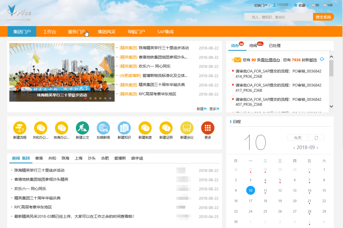 此外,统一服务(门户、消息、搜索、用户)、统一应用(协同、知识、文化、业务)、开发平台(可建模、可集成、可开发)及各种应用,让组织协作高效如一。流程指数、员工画像、舆情分析等,助力构建企业数字化“大脑”;千人千面的智能门户、识人识事的智能助手,还有智能搜索、智能问答等,带领大家重新定义未来智慧办公。 RPC-ACE集团:用OA落地管理支撑一休化 精英制模有限公司(ACE)是国际一流的模具制造商,也是全球包装领域新技术的领导者、欧洲最大的硬质塑料包装企业RPC旗下企业。面对旧有OA无法支撑集团化管控、ERP等业务系统难互通、移动办公体验差等问题,携手蓝凌一起打造了全新智慧OA平台。