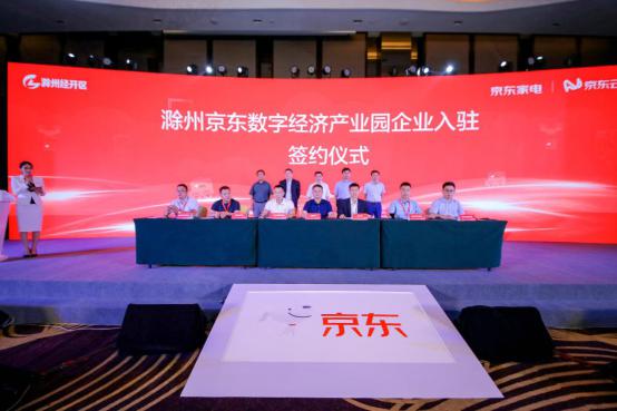 作为大会的重要环节——“滁州京东数字经济产业园企业入驻签约仪式”,在现场300多位嘉宾的见证下,成功举行。宁波星通路、安徽金帅洗衣机、滁州扬子清洁设备、滁州扬子现代集成智能厨房电器、滁州宾鸿五家家电企业与京东云签署入驻滁州京东数字经济产业园协议书,旨在大数据、云计算、人工智能等方面展开更多合作。
