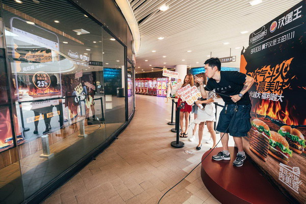 寻找真正“玩火”专家,天猫汉堡王联手“烧”了一家店 相信真正火烤才能造就好滋味的汉堡王,经常通过“玩火”趣味营销持续吸引爱堡人士的好感。天猫超级品牌日基于汉堡王这一独特品牌属性,成就了一张别开生面的线上线下“玩火”大戏。在预热期,天猫联手汉堡王在微博上线了“火越大福利越大”品牌视频,推出“吹气斗火”赢取免费火烤汉堡活动,吸引大批嗜堡如命的食客前往汉堡王天猫旗舰店为喷香火烤汉堡而战,成功收获活动关注。 为了让食客们过足“玩火”的瘾,活动当天,天猫更是联手汉堡王在线下“点燃”了一家汉堡王的门店。汉堡王上海汉堡王上海世博源餐厅被包装成了“火光冲天”的样子,空气中弥漫着火烤汉堡的特殊香气……店外“吹气斗火赢美味,火越大,福利越大”的海报吸引了食客们的关注,很多年轻人簇拥在餐厅设置的9块电子大屏前,依照提示进行“吹气斗火”比赛,呐喊助威声、笑声、掌声不绝于耳,围观者跃跃欲试。