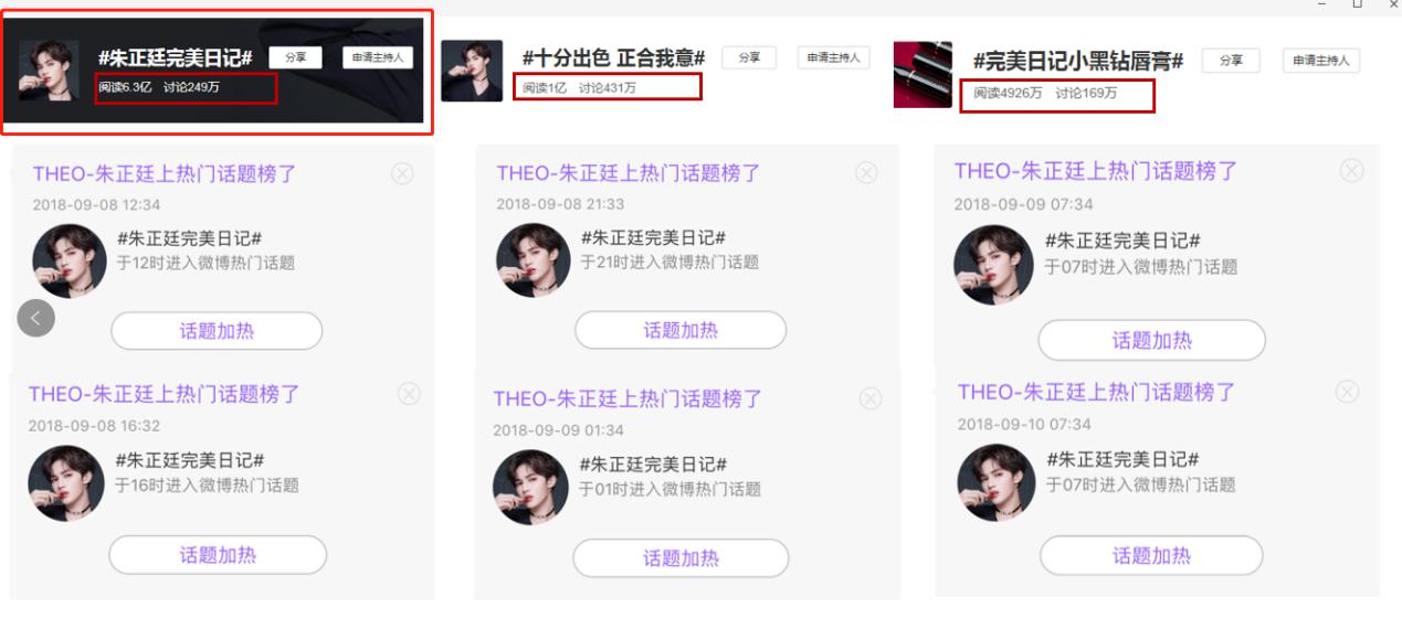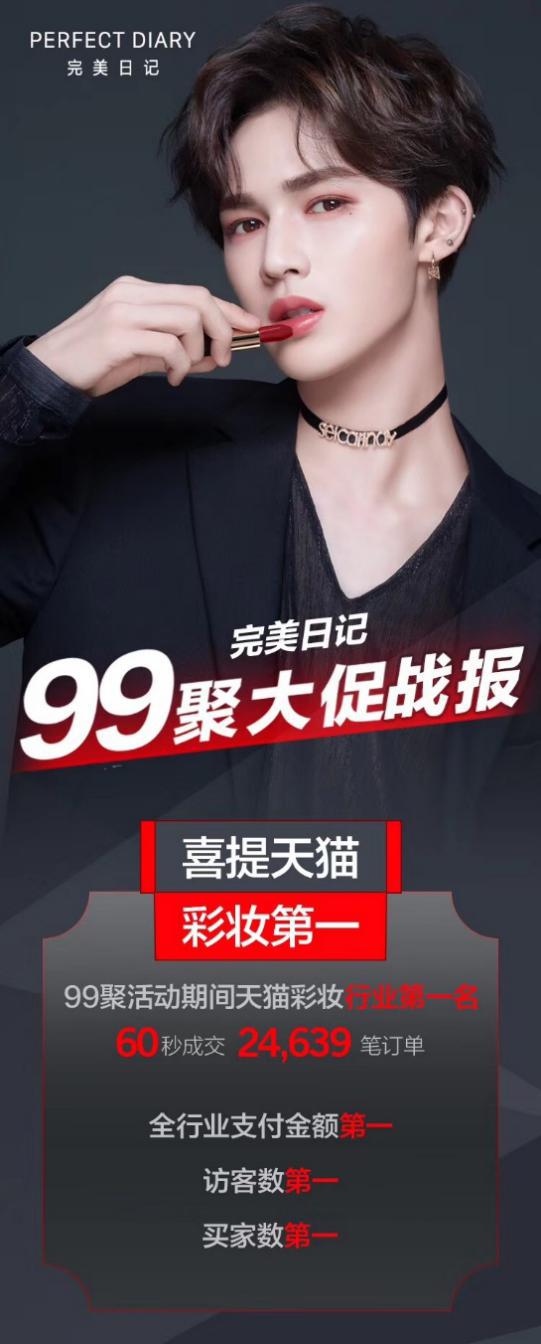 作为人气偶像,朱正廷自带话题流量,“颜值与实力并存,既是乐华七子NEXT暖心队长、宠粉狂魔,还是舞蹈实力派、颜值担当” 种种话题标签让其与完美日记自携手之初,便形成了线上线下的霸屏之势,#朱正廷完美日记#、#十分出色正合我意#、#完美日记小黑钻唇膏#三大话题全网阅读量高达7.79亿,跻身热门话题TOP10行列。