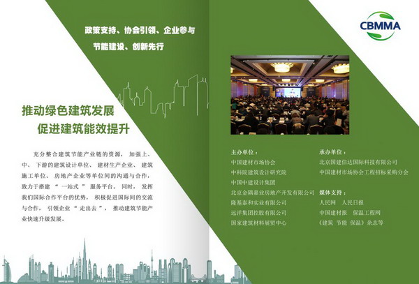二、大会专题活动: 1. 中国建材市场协会分会成立大会及相关活动:中国建材市场协会建筑节能分会 2. 专家对话会: 围绕绿色建筑、被动式低能耗建筑、装配式建筑、节能保温材料系统、门窗幕墙、新风系统等专题进行交流活动。 3. 大会配套优质建筑节能技术及产品展区: 国内外先进建筑节能及绿色低能耗生态建筑技术与产品展示 4. 发布《建筑节能产品市场评定》细则 5. 房地产及“健康建材”团体标准落地项目对接活动 6. 国际建筑节能市场发展现状、需求情况及相关政策标准解读 7. 中国建材市场协会颁发建筑节能产品系列创新奖 8. 参观国家建筑节能技术国际创新园(高碑店) 三、大会时间地点: 时 间:2018年10月27-28日 地 点:北京 • 中土大厦酒店 (海淀区北蜂窝6号,位于莲花池东路,西邻北京西站) 四、参会费用: 1. 会务费:1800元/人【含参会费、餐费、园区参观活动、资料费(大会论文集等)】 2. 交通与住宿费自理 五、征集大会协办及赞助单位: 本届大会征集协办单位、大会赞助商的冠名权。赞助项目请与会务组联系签约确定。 提供会议宣传材料及宣传的各大网站、媒体等媒介上标明协办单位名称,会议期间将安排产品推介活动,场地/视频展示或专题讲解等环节对企业产品进行推广宣传。 六、大会主办单位: 中国建材市场协会 中科院建筑设计研究院 中国中建设计集团 北京金隅嘉业房地产开发有限公司 隆基泰和实业有限公司 远洋集团控股有限公司 国家建筑材料展贸中心 七、大会承办单位: 国家建筑材料展贸中心 中国建材市场协会工程招标采购分会 八、媒体支持: 人民网、人民日报、中国建材报、保温工程网、新浪网、今日头条、凤凰网、财经快报网、中国网、《建筑 节能 保温》杂志、河北新闻网、河北之窗、河北信息网、国际在线、中国商业观察、中华商业网、中华网、人民交通网、中国商业周刊网等 更多详情,请关注中国建材市场协会官网! 通讯地址:北京市海淀区三里河路甲11号中国建材大厦C座4层 中国建材市场协会 国家建筑材料展贸中心 2018年8月10日 中国首席商业资讯门户;更多内容请关注中国商业网各频道、栏目资讯。 免责声明:凡本站注明 “来自:XXX(非中国商业网)”的新闻稿件和图片作品,系本站转载自其它媒体,转载目的在于信息传递,并不代表本站赞同其观点和对其真实性负责 。 |