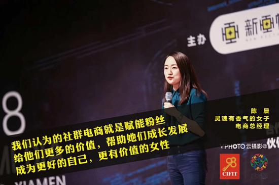 文化IP“灵魂有香气的女子”由李筱懿和好友陶妍妍于2014年共同创立,是国内具有头部影响力的定位中产女性成长的自媒体之一,目前估值3亿元。“灵魂有香气的女子”自2016年年底开始试水电商,2017年1月份灵魂有香气的女子的电商平台“香气优选”突破100万营收,2017年6月突破300万,2017年10月突破600万,2018年3月已经突破1千万。“香气优选”目前拥有超过600个商品,主要涵盖女性生活各方面,比如穿搭日用、美妆护肤、书籍文创等等。 “社群电商和传统货架电商并非一个物种。”陈晨说:“社群电商除了给社群的所有人提供买卖价值之外,社群里的每个人可以在这里各取所需,愉快的玩耍。”